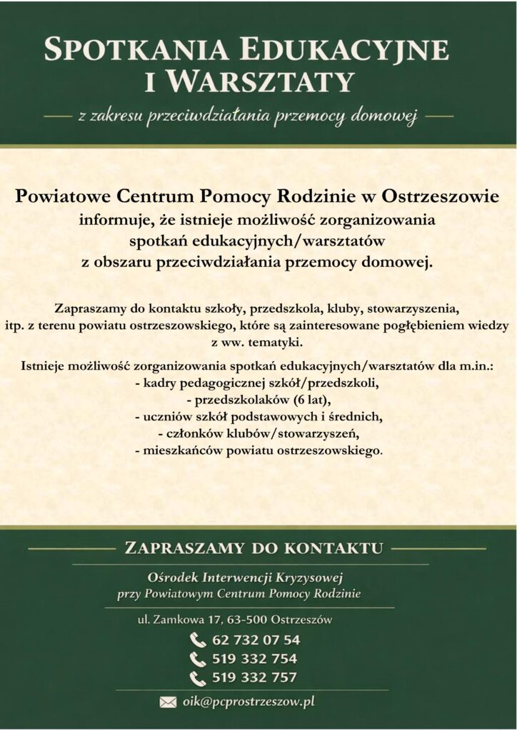Instytucje z terenu powiatu ostrzeszowskiego realizujące oferty pomocowe dla osób stosujących przemoc 26 stycznia, 2026